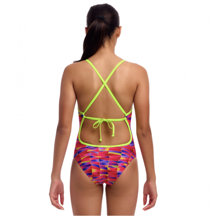 Цей купальник — ідеальний вибір для юних плавців, які шукають комфорт, стиль та довговічність. Модель Tie Me Tight One Piece від Funkita має унікальну конструкцію, що забезпечує максимальну свободу рухів. Тонкі бретелі дозволяють регулювати посадку, а відкрита спина сприяє гнучкості та легкості у воді. Цей купальник не обмежує рухів, дозволяючи виконувати будь-які елементи плавання з комфортом.