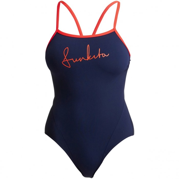 Жіночий купальник з однією лямкою від Funkita має спортивний виріз на спині з тонкою V-подібною лямкою, яка забезпечує необхідну свободу рухів під час тренування. Щоб нічого не просвічувало крізь купальник, він має внутрішню підкладку в передній частині. Вирізи для ніг мають звичайну висоту.