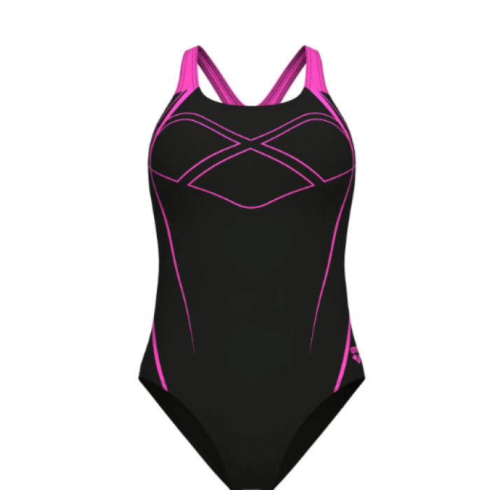 Жіночий спортивний купальник Arena Graphic Swim Pro Back з ультракомфортної колекції Arena Feel ідеально підходить для тренувань і будь-яких водних активностей у басейні, на пляжі або у відкритій воді. Він забезпечує середню підтримку, має X-подібну спинку, середній виріз стегна та широкі бретелі для надійної фіксації. Виготовлений з еластичної в чотирьох напрямках тканини MaxFit Eco, що містить перероблений поліамід і сертифікованої за стандартом STANDARD 100 by OEKO-TEX®. Цей матеріал гарантує свободу рухів, комфорт, стійкість до хлору та захист від УФ-променів (UPF 50+).