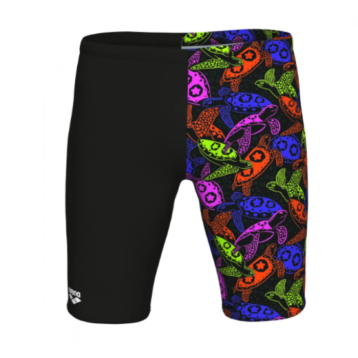 Сила поєднується з грою в чоловічих плавках-джамерах Sea Turtles. Одна штанина виконана в лаконічному чорному кольорі, інша — з яскравим принтом черепах, що створює баланс між серйозним тренуванням і сміливим самовираженням. Виготовлені з найбільш стійкої до хлору тканини, яка щільно облягає тіло, ці джамери розраховані на часті тренування та виразний стиль. Пірнайте у воду й зробіть кожен гребок максимально ефективним.