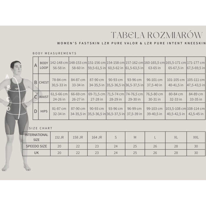 Стартовий гідрокостюм Speedo LZR INTENT 2.0 OPBK KSKN AF – представляємо останню еволюцію серії Fastskin LZR Pure Intent – НОВИЙ купальник Fastskin LZR Pure Intent 2.0 Openback Kneeskin, розроблений плавцями для плавців. Серія Intent 2.0 має нове, довговічне водовідштовхувальне покриття, яке має подвійні компресійні шари та ергономічну конструкцію швів, призначену для з’єднання ключових груп м’язів для збільшення віддачі енергії. Текстуровані зони тканини розроблені для зменшення опору, щоб ви могли отримати найкраще від свого плавання, а конструкція тканини з потрійними швами створена для більшої рухливості. Відкрита спина забезпечує більшу свободу рухів, і її можуть віддати перевагу плавці з вигнутою спиною. Цей продукт повністю схвалений FINA.