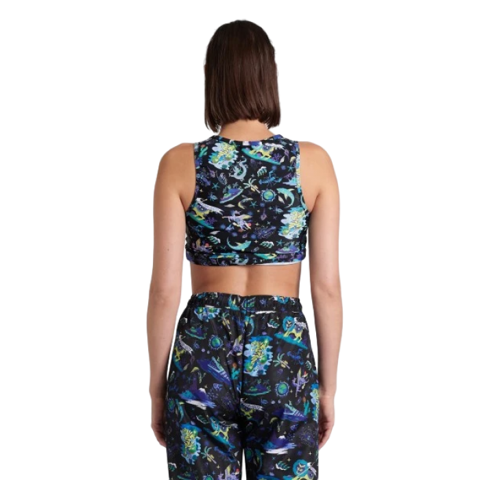 Наш жіночий бюстгальтер Fun Planet Bra Top виготовлений із еластичної тканини, включно з переробленими матеріалами. Цей укорочений топ має оригінальний принт, створений Shinpei Naito для нашої капсули Fun Planet. Облягаючий дизайн легко переходить від дня до ночі.